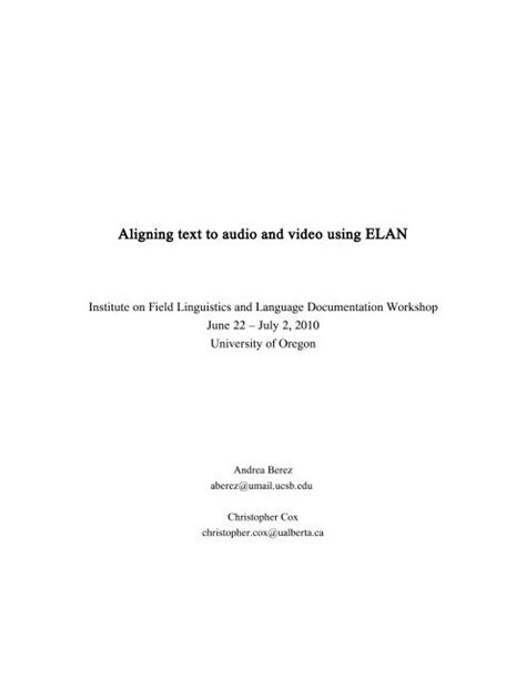 Read Online Aligning Text to Audio and Video Using ELAN pdf rtf